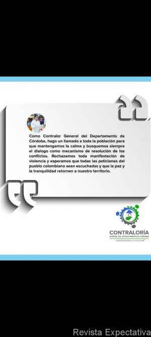 MONTERIA CORDOBA-. EL DOCTOR OMAR LOZANO FLÓREZ, CONTRALOR GENERAL DE CÓRDOBA HA ENVIADO A TRAVÉS DE REVISTA EXPECTATIVA 40 aÑOS, EL SIGUIENTE MENSAJE A LA OPINION PUBLICA debido a la…