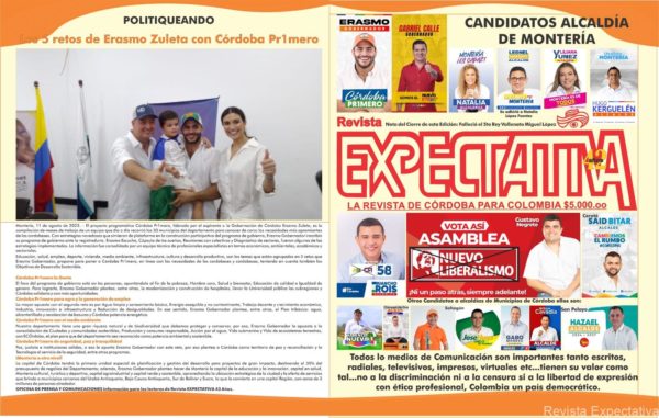 MONTERIA CORDOBA-.Gracias a Dios les participamos su y nuestras Portada y Contra Portada de una edición Especial Impresa de Revista EXPECTATIVA Edición, entra en circulación a partir de hoy Jueves…