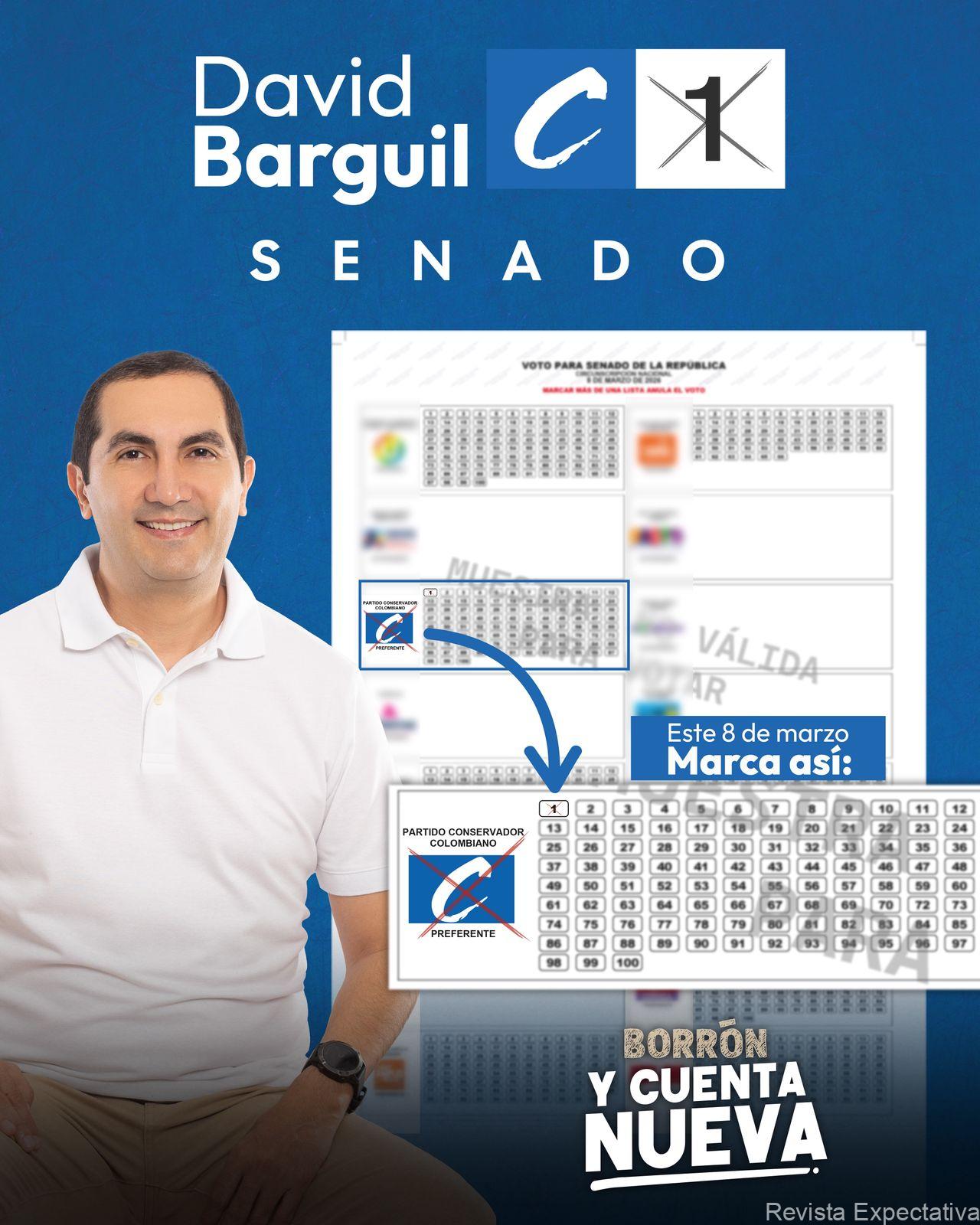 Porque lo bueno repite, este 8 de marzo vota por David Barguil al Senado, marcando en el tarjetón electoral el número 1 y el logo del Partido Conservador.