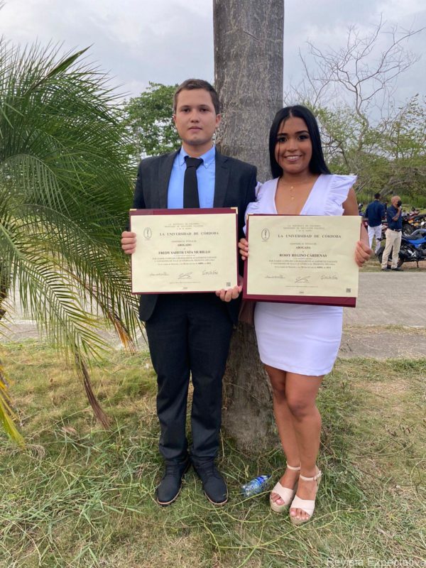 MONTERIA CORDOBA-. En la tarde de hoy 19 de Abril del 2023, la Universidad de Córdoba … Acreditada Institucionalmente, en ceremonia de graduación que tuvo lugar en el Centro de Convenciones de esta ciudad, le otorgó el título de Abogado a los jóvenes Fredy Sahith Usta Murillo y Rossi Regino Cárdenas, quienes aparecen en la presente gráfica para los lectores de Revista EXPECTATIVA 42 AÑOS., SON FELICITADOS por sus padres, hermanos y demás familiares quienes le desean muchos éxitos en su carrera profesional