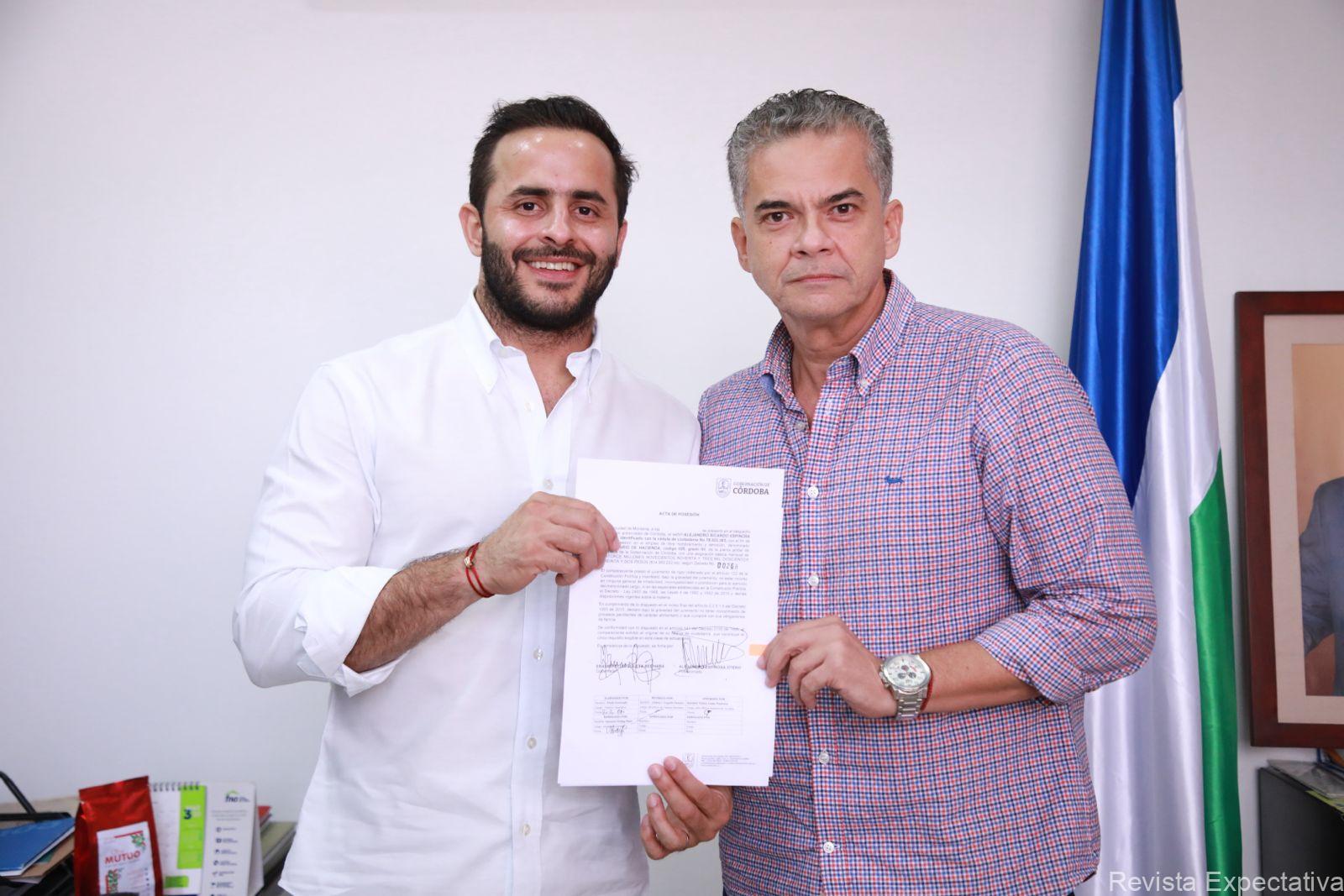 Alejandro Espinosa Otero, quien asumió como nuevo Secretario de Hacienda Departamental, es un especialista con más de 22 años de experiencia en el sector público y privado, en el estudio, análisis y control de proyectos de inversión en áreas económicas. Anteriormente fue Secretario de Hacienda de Montería y experto en asuntos de reestructuración económica según la ley 550 en entidades públicas y privadas.
