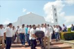 En la foto de Revista EXPECTATIVA, sus hijos, demás familiares y amigos cargan el féretro del Magistrado.