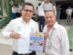 Foto cortesía Pompilio Silva donde aparecen el Rector Jairo Torres Oviedo y el director de la Revista EXPECTATIVA, Roberto Castilla Arroyo.