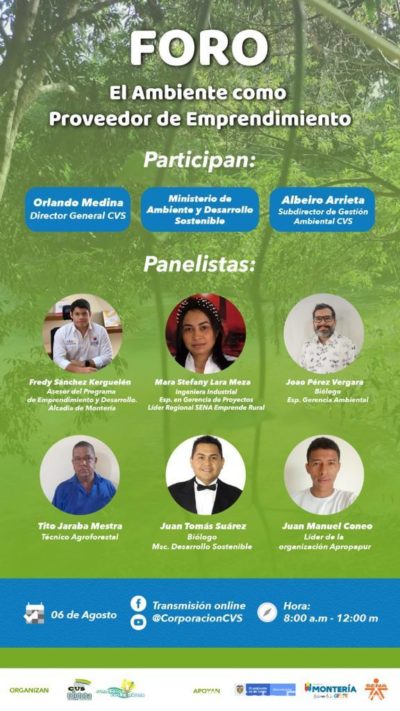 La Ventanilla de los Negocios Verdes de la CVS te invita a participar en el foro “El Ambiente como Proveedor de Emprendimiento” un espacio que busca socializar la Estrategia Nacional de Emprendimiento Verde con instituciones, negocios y actores del territorio que le apuestan a la economía sostenible como pilar de la reactivación económica verde.