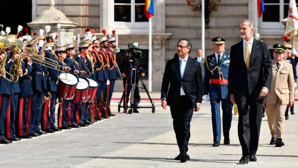 Durante la ceremonia de recibimiento se interpretaron los himnos nacionales de Colombia y España, bajo salvas de cañonazos, y el Presidente Petro y el Rey Felipe VI pasaron revista al batallón de la Guardia Real que rindió honores.