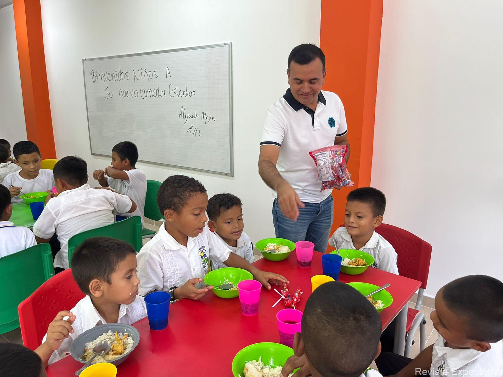 Los niños y niñas estudiantes de la I.E. Barro Prieto sede Mayoría del municipio de Ciénaga de Oro, recibieron del alcalde, Alejandro Mejía , el nuevo comedor escolar
