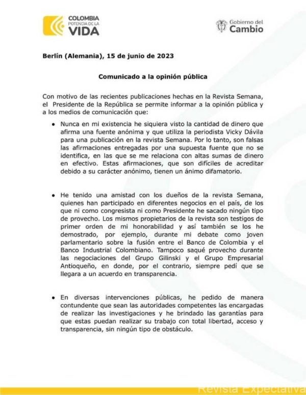 Este es el texto vía TWITTER del COMUNICADO que ha enviado el Presidente de la República Gustavo Petro Urrego … A LA OPINIÓN PÚBLICA … que damos a conocer a…