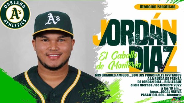 MONTERIA CORDOBA-. En horas de la tarde de ayer Jueves 6 de Octubre, llegó procedente de los estados Unidos a su tierra natal Montería, el primer Big League que ha parido Córdoba el joven beisbolista Yordan David Díaz Sandoval, quien pasará sus vacaciones al lado de sus familiares residenciados en el corregimiento de Garzones.
