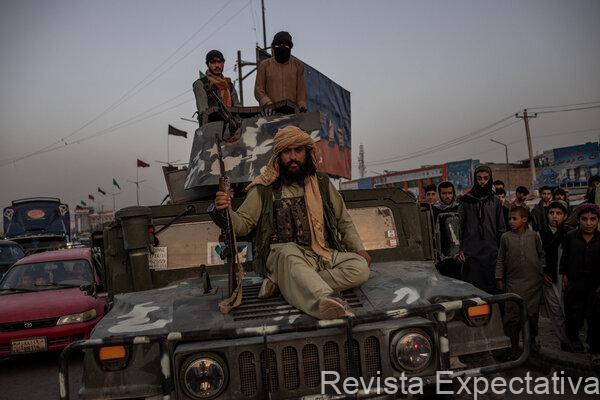 Combatientes talibanes el domingo en Kabul, en un Humvee arrebatado a las fuerzas afganas.Jim Huylebroek para The New York Times.